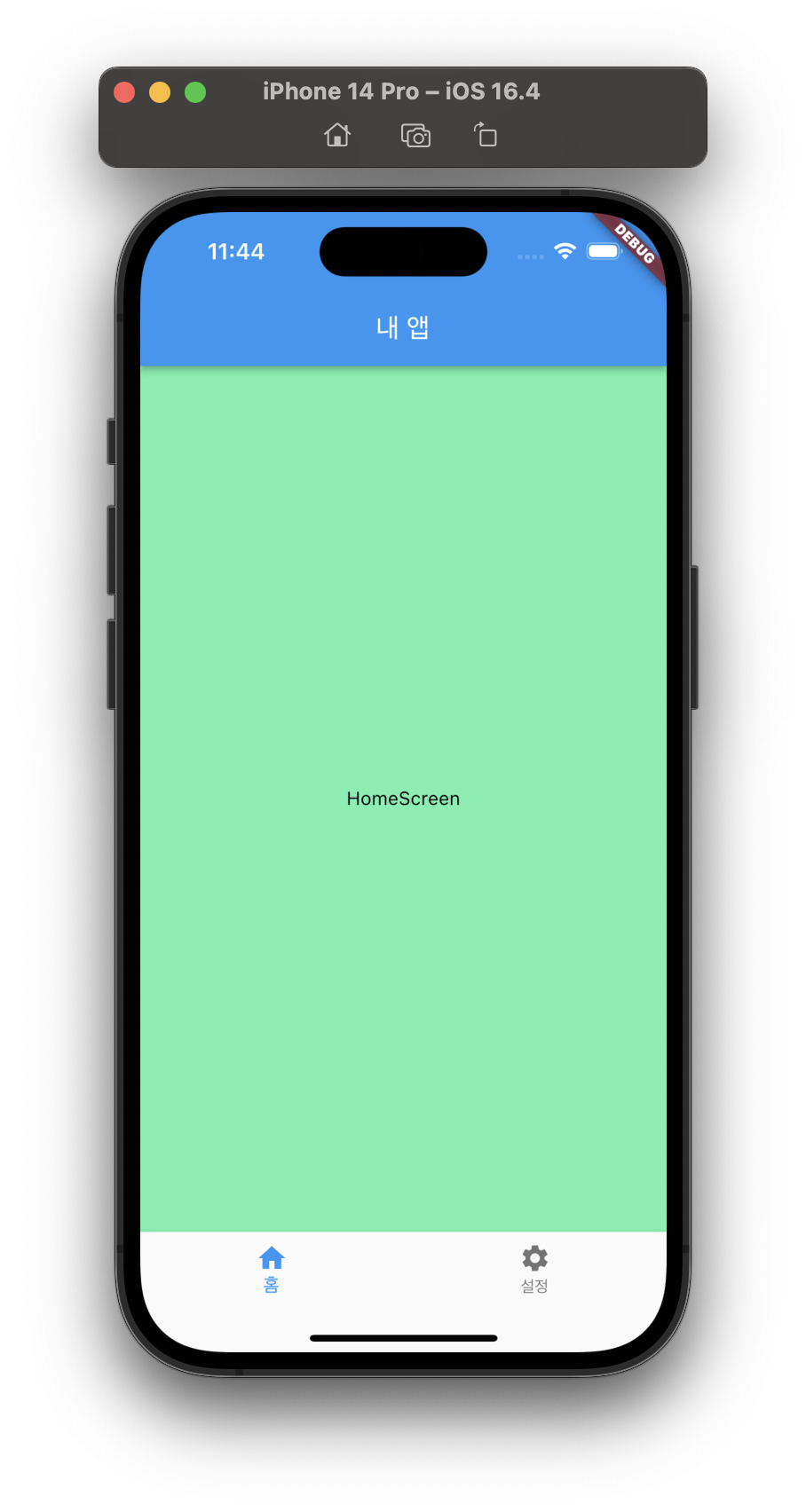 이제 위의 코드를 실행하면 앱 화면 상단에 "내 앱"이라는 타이틀이 표시되며, 초기 화면은 HomeScreen이 됩니다. 하단의 탭 메뉴를 클릭하면 _currentIndex 값이 변경되고, 해당 화면이 선택되어 표시됩니다.