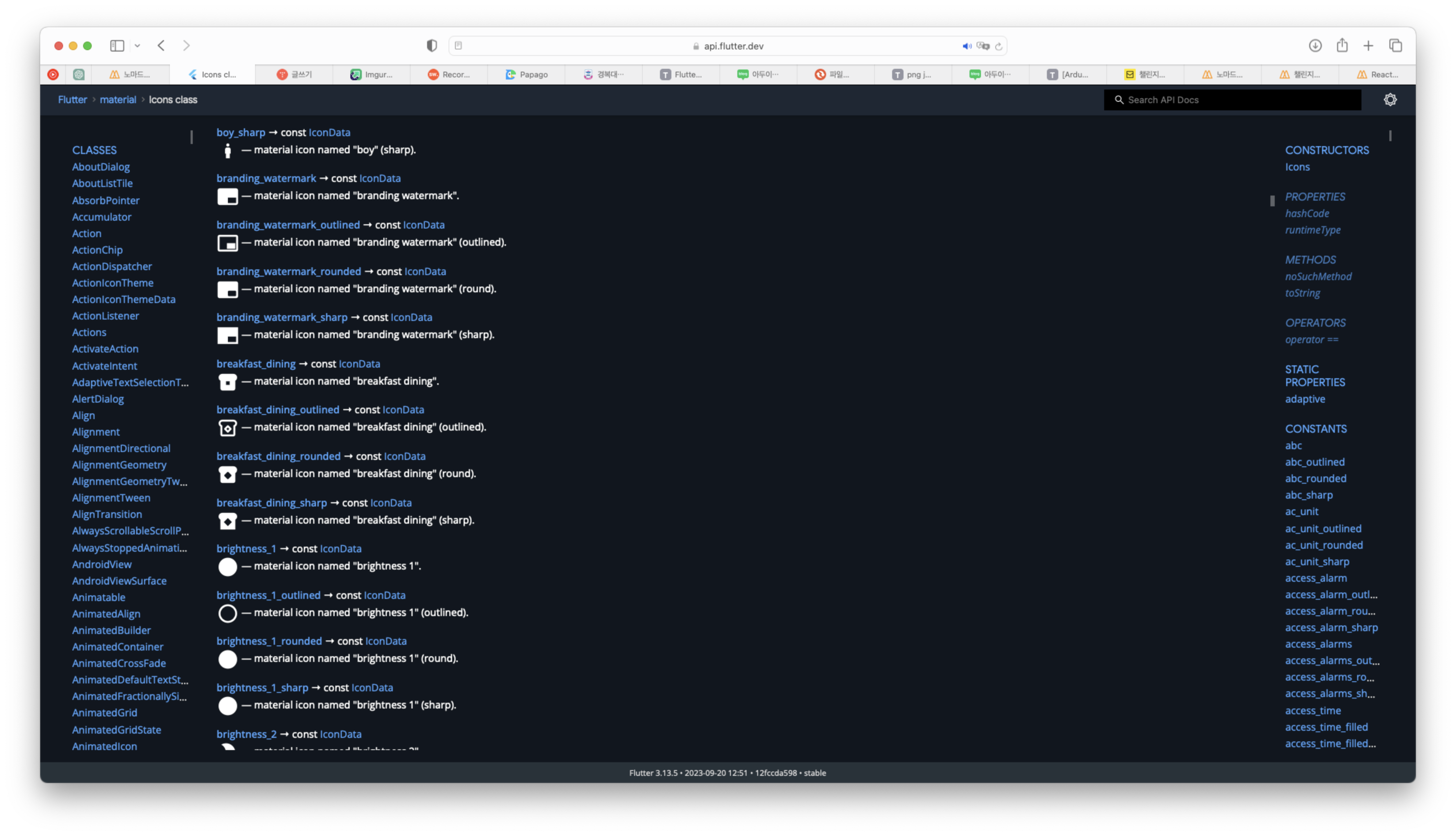 Flutter Icons 라이브러리의 무수한 아이콘중 하나를 찾기 위해서는 두가지 방법이 있습니다: